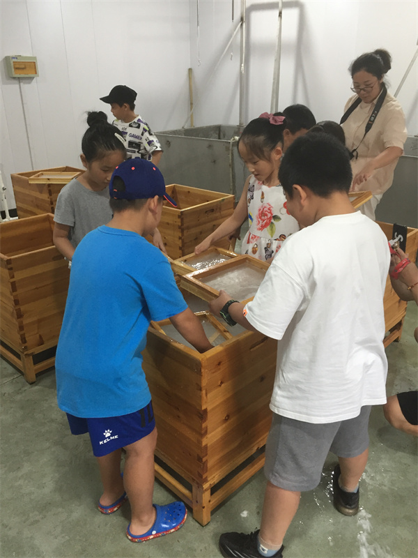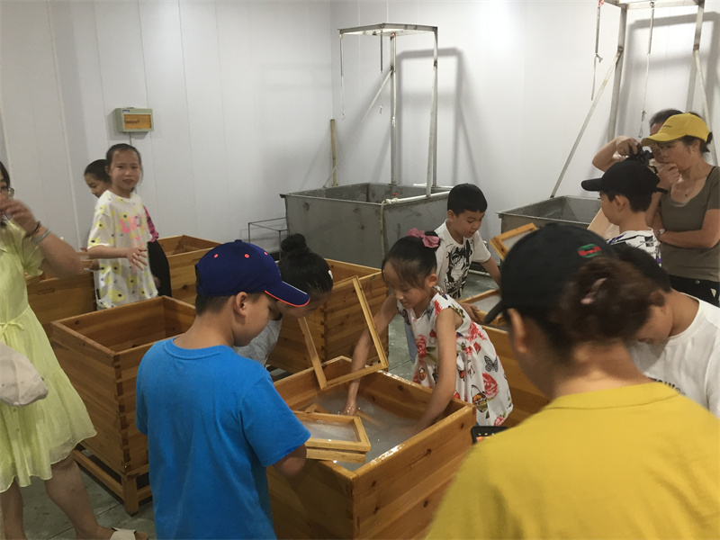 2021年8月28日,暑假的結(jié)尾,再來(lái)一波研學(xué)體驗(yàn),小朋友們學(xué)習(xí)如何撈紙,在實(shí)踐中體驗(yàn)紙的生產(chǎn)不易,學(xué)會(huì)珍惜愛(ài)護(hù)用紙